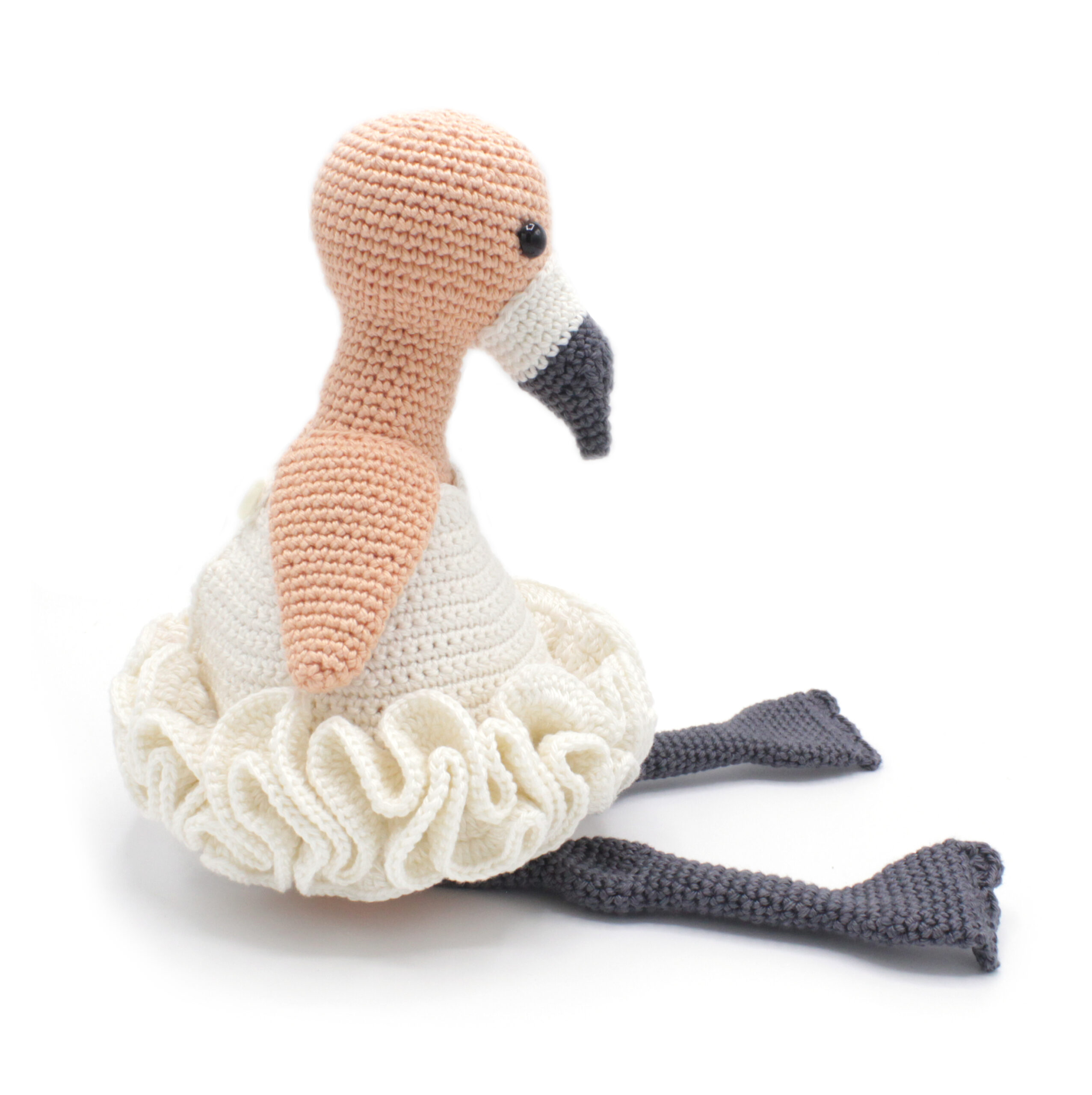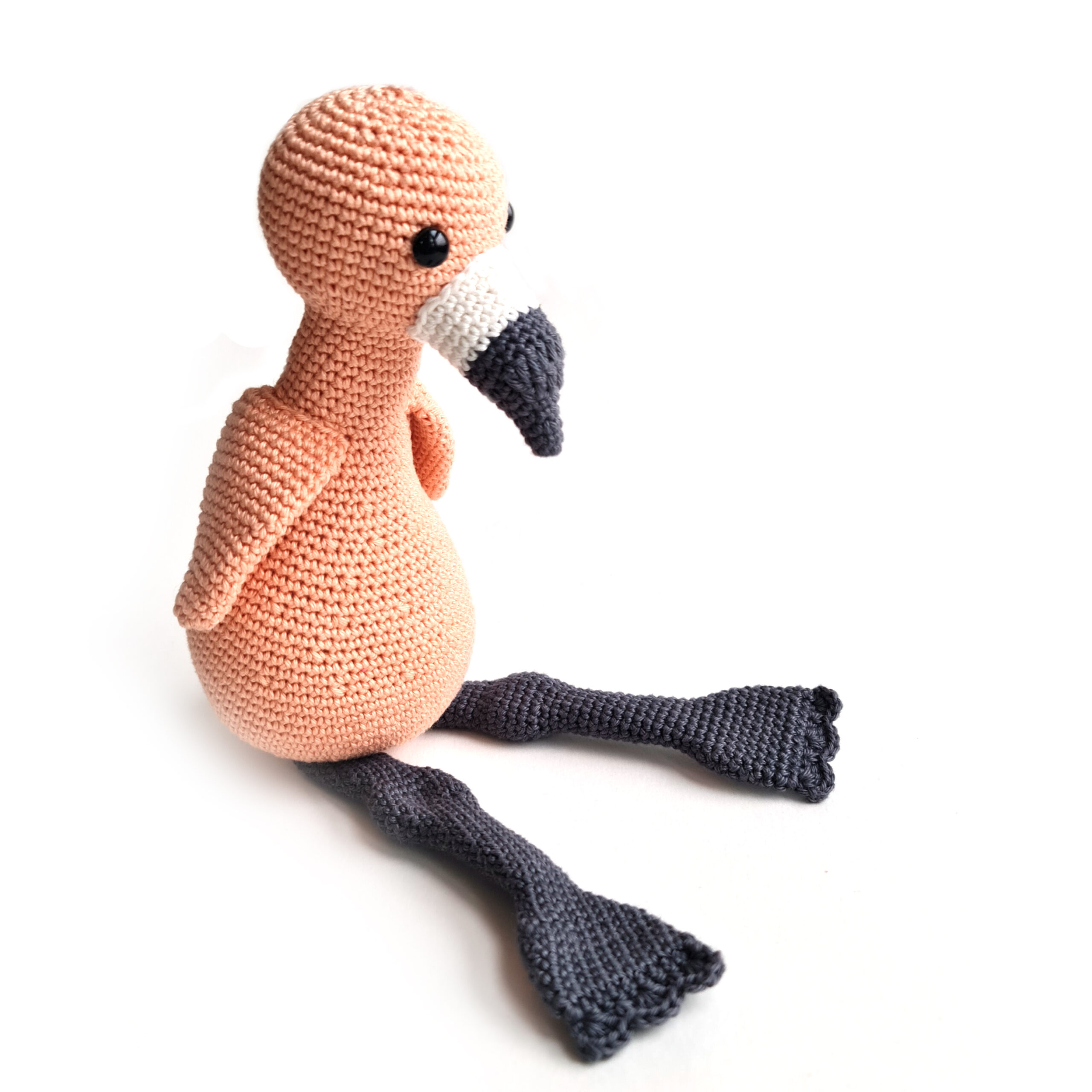 Femke ist etwa 35 cm groß, sitzt etwa 20 cm und wurde mit einer 2,5 mm Häkelnadel gehäkelt.