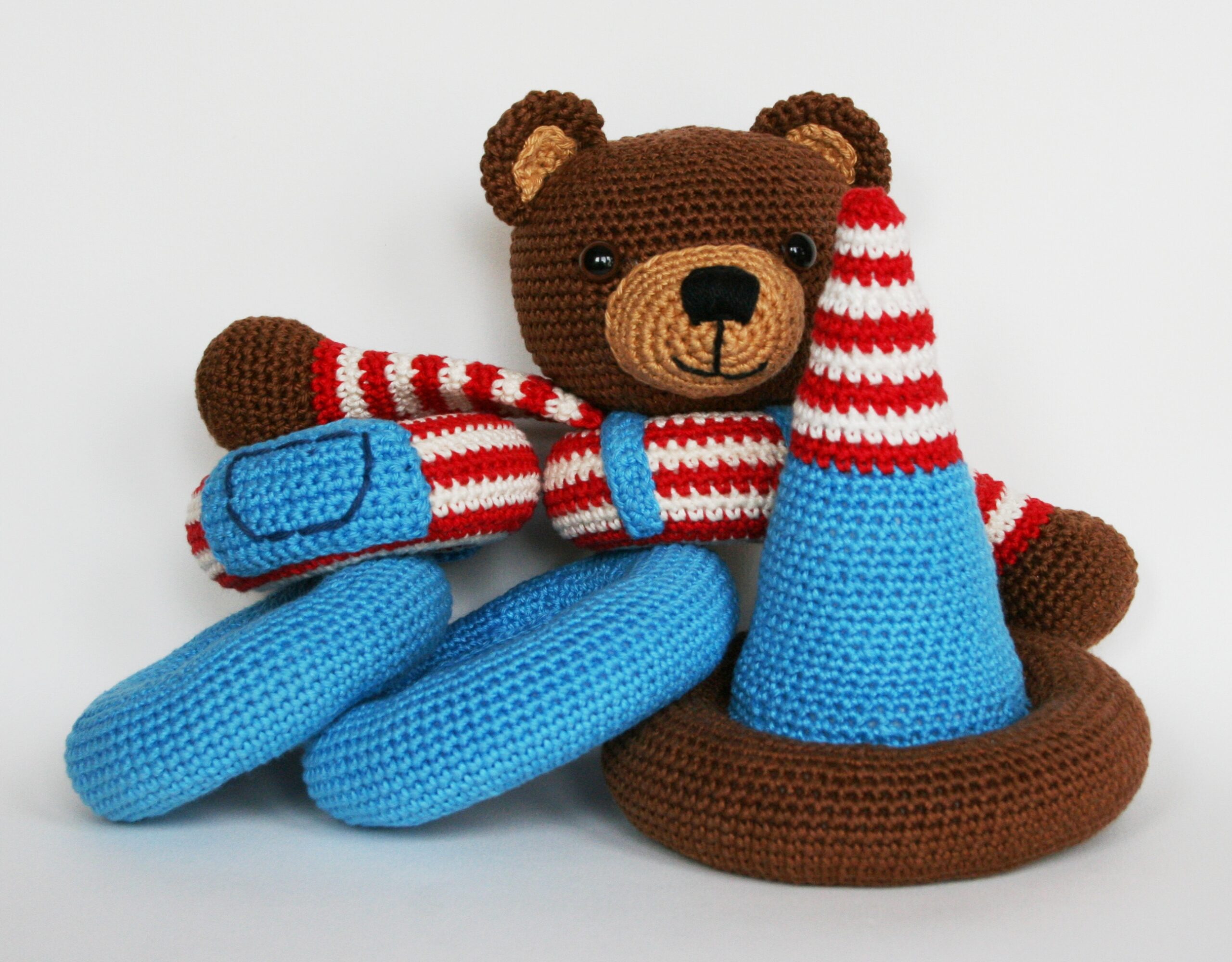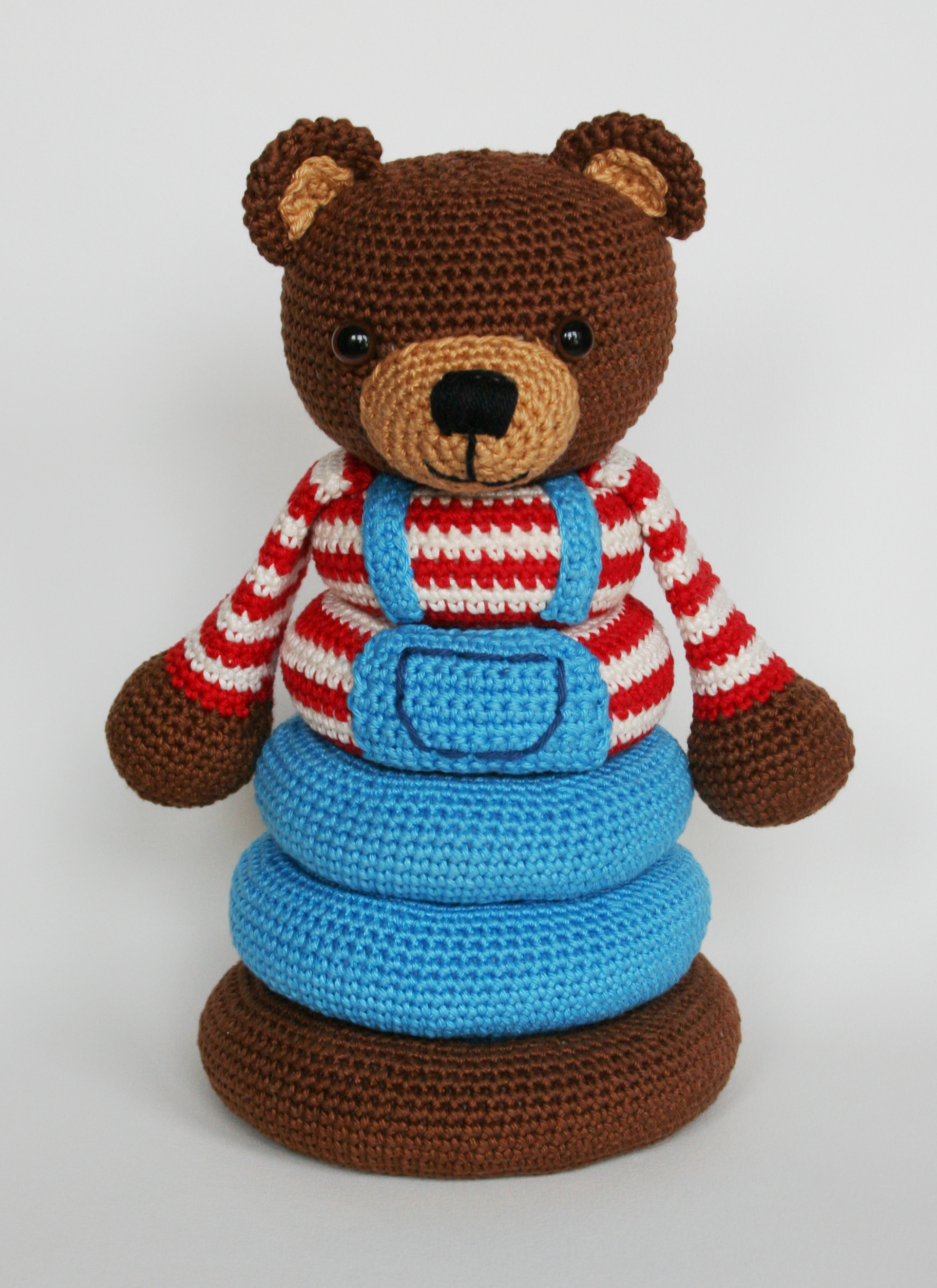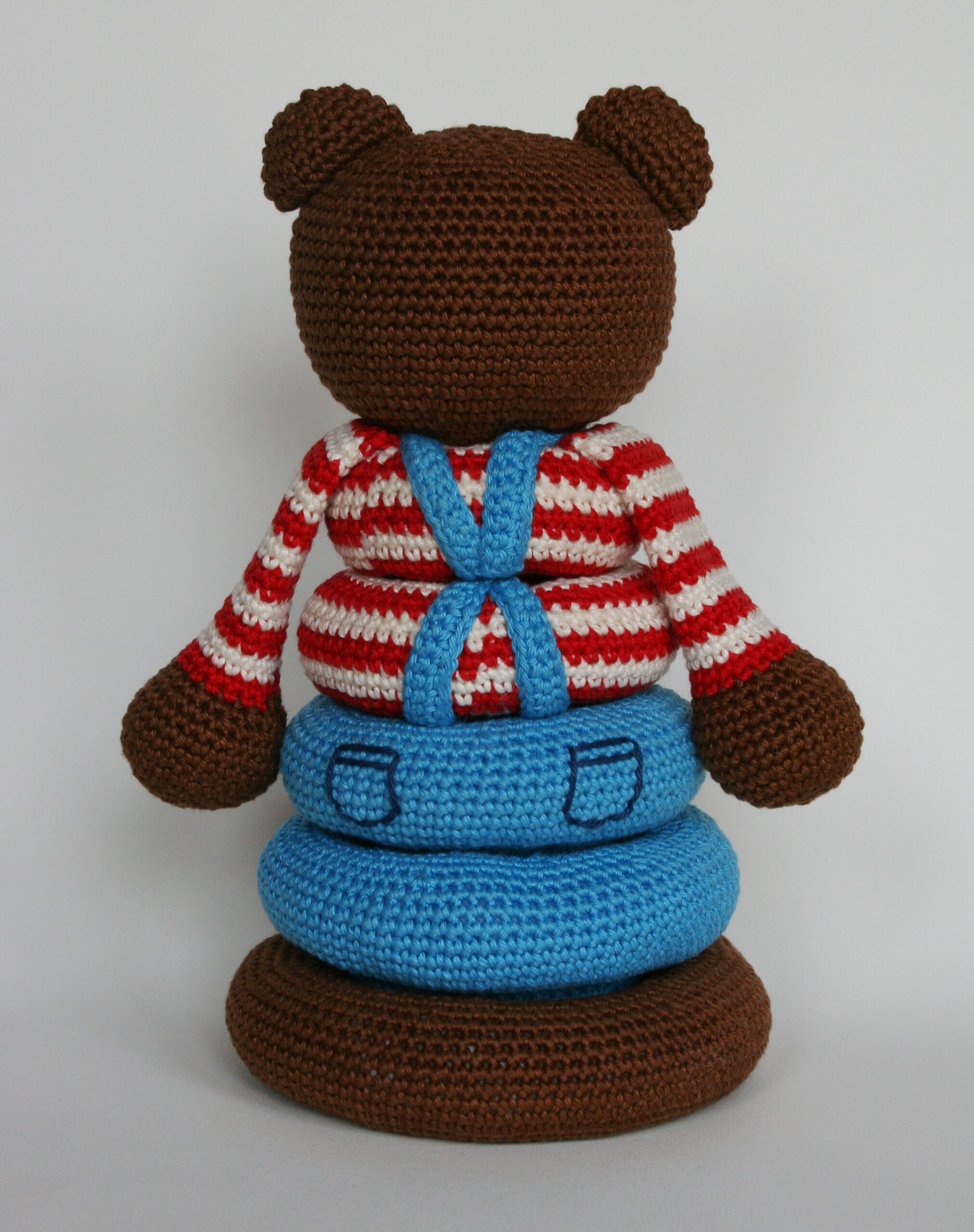 Der Stapelbär ist etwa 24 cm hoch und wurde mit einer Häkelnadel der Stärke 2,5 gehäkelt.