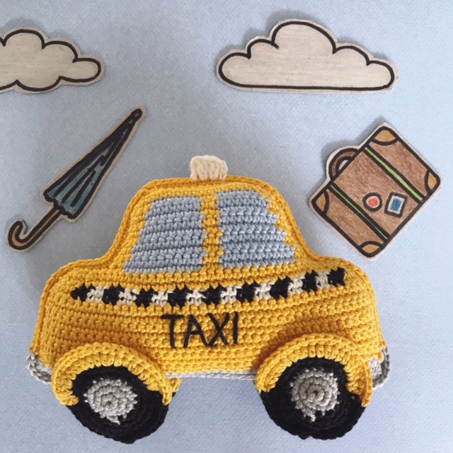 The police car is approximately 16 cm long and 13 cm high, crocheted with a 2.5 cm crochet hook.