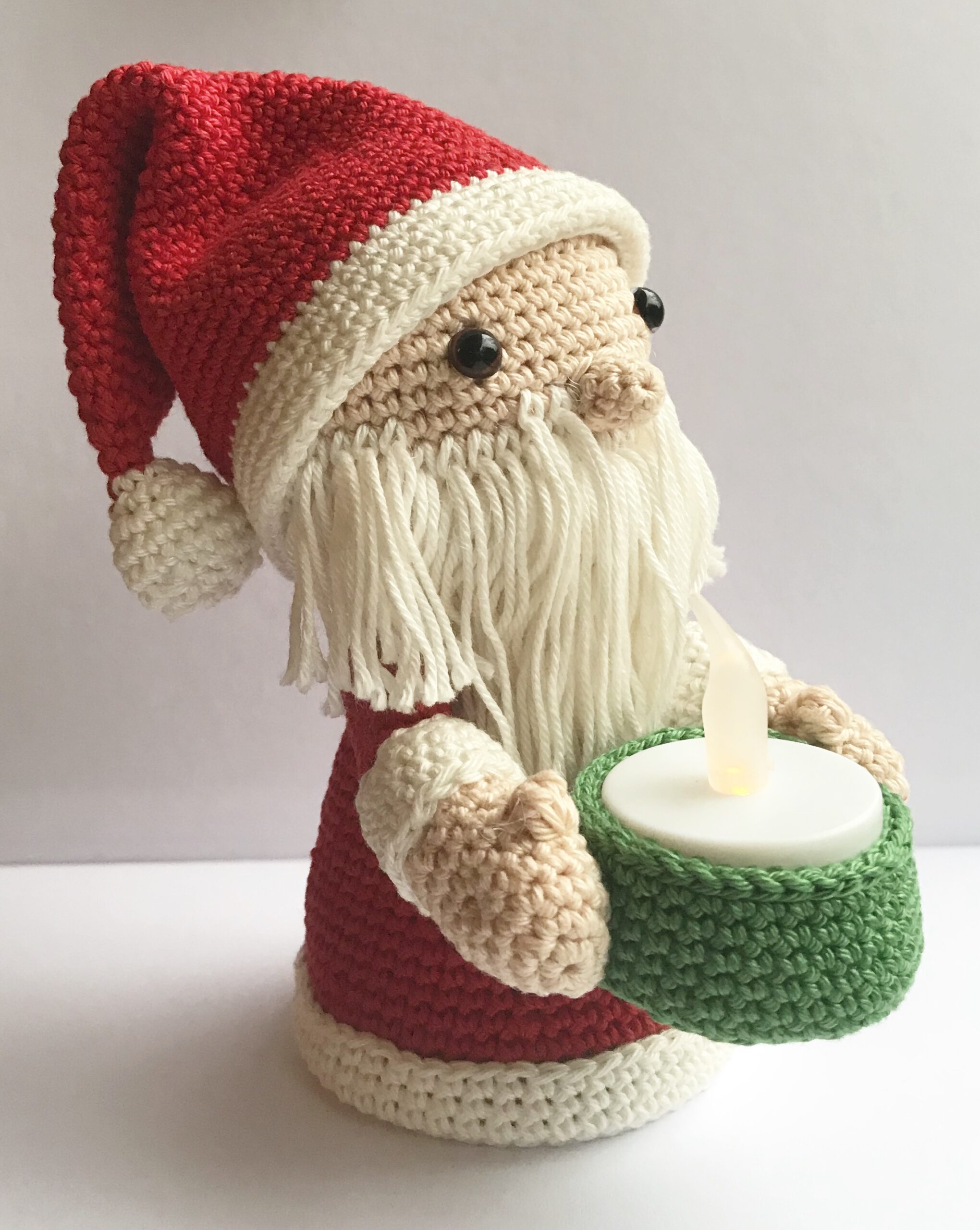 Santa Claus is approximately 16cm tall, crocheted with a 2.5mm crochet hook.