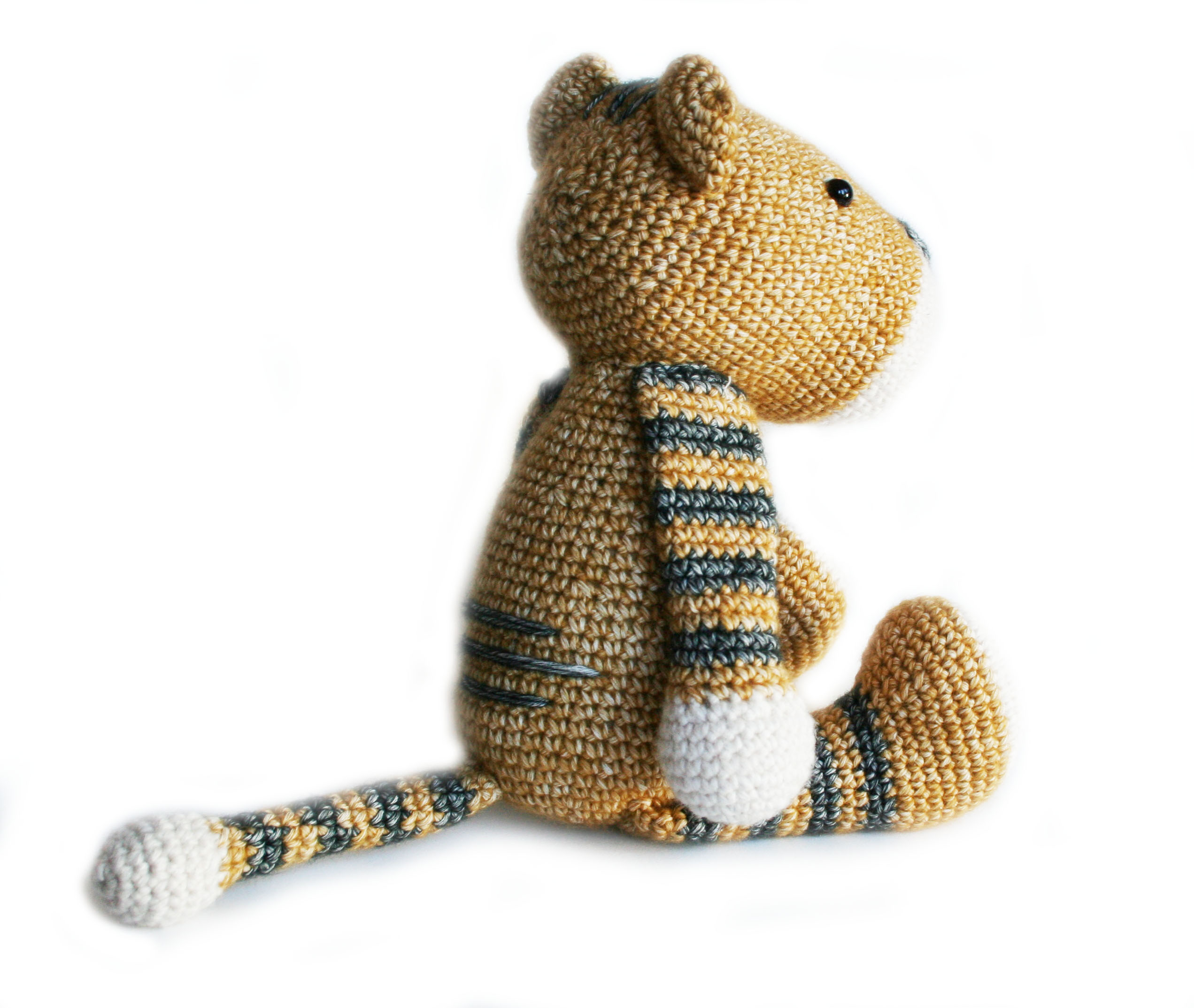 Tobias is made from Scheepjes Stonewashed. I was so immediately enthusiastic about the yarn that I dropped my current project and started crocheting a bodice. I didn’t yet know what kind of creature I wanted to make. It turned out to be Tobias, a not-so-tough tiger.