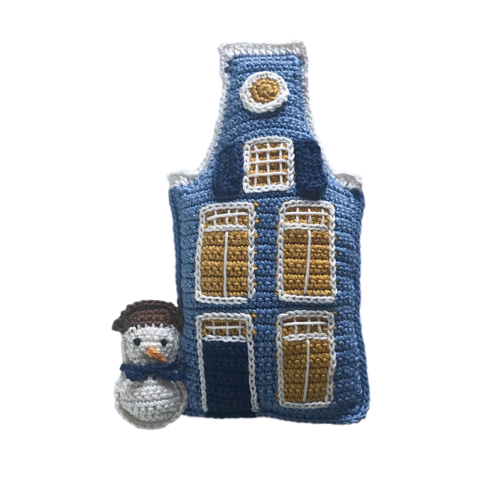 Het huisje wordt ongeveer 19 cm hoog, gehaakt met haaknaald nr. 2,5