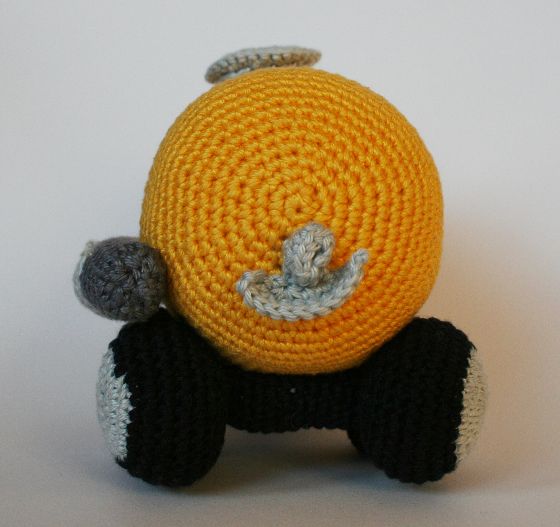 De giertank wordt ongeveer 15 cm lang en 10 cm hoog, gehaakt met haaknaald nr. 2,5.