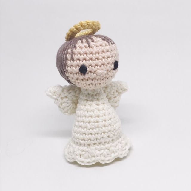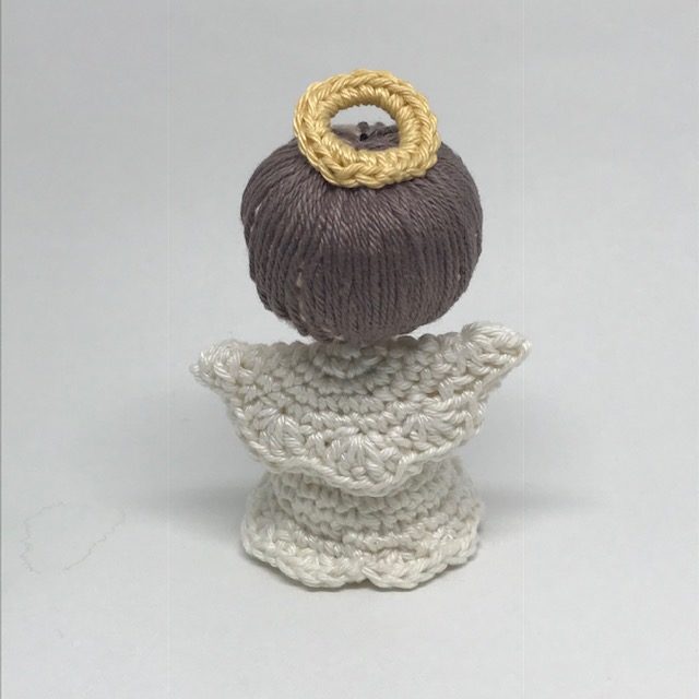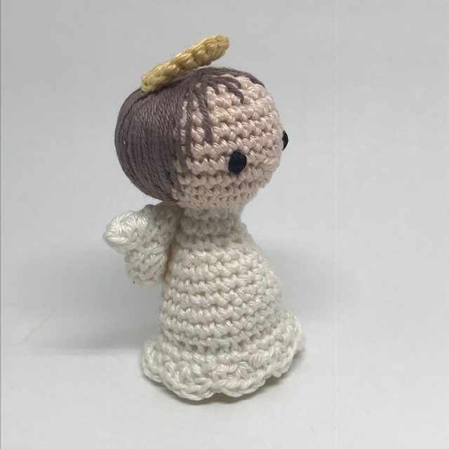 Het engeltje wordt ongeveer 9 cm hoog, gehaakt met haaknaald 2,5